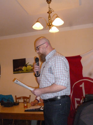 45 Mitglieder haben sich eingefunden und wir konnten fast Pünktlich starten. Jens Weidner begrüßte in 2 Bürgermeister Jürgen Konsolke, von der Fanbetreuung Jürgen Bergmann, Dieter Altmann vom AK- Soziales, Ehrenmitglied Jochen Beißer sowie unseren Ehrenvorstand Thomas Peter.