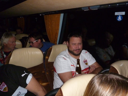 Somit machten wir uns mit gemischten Gefühl auf den Heimweg. Der Tag wurde noch schlimmer, nach der deprimierenden Niederlage musste auf halber Strecke die entsetzende Meldung im Bus ausgegeben werden, dass die Nachfrage für Hopfenhaltiges Erfrischung Getränk deutlich höher ist wie der Bestand zulässt.